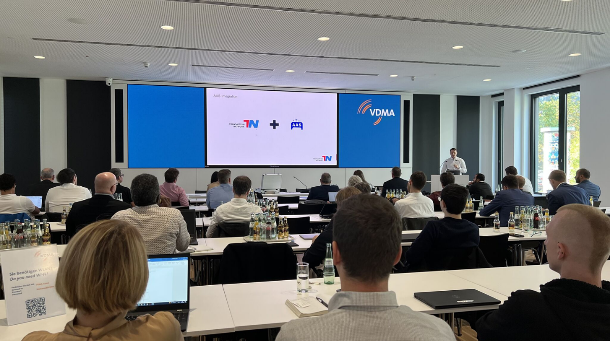 Matthias Maier, CTO Transaction-Network erklärt im Rahmen der IDTA Versammlung die Möglichkeiten des digitalen Zwillings bei Transaction-Network.