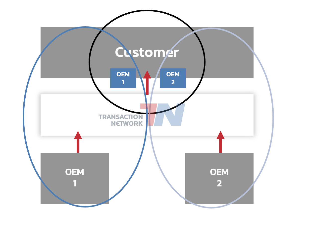 Die dargestellte Grafik ist bewusst vereinfacht und dient der Illustration des Grundprinzips. In der Realität sind Datenräume innerhalb von Transaction-Network deutlich differenzierter aufgebaut. Neben OEM und Kunde existieren weitere Rollen wie Servicepartner, Materiallieferanten oder Betreiberorganisationen mit jeweils eigenen Zugriffsrechten, Verantwortlichkeiten und Datenhoheiten. Daten werden nicht pauschal geteilt, sondern kontextbezogen, rollenbasiert und prozessabhängig freigegeben. Transaction-Network steuert diese komplexen Beziehungen strukturiert im Hintergrund und sorgt dafür, dass Informationen genau dort verfügbar sind, wo sie für einen konkreten Serviceprozess benötigt werden.